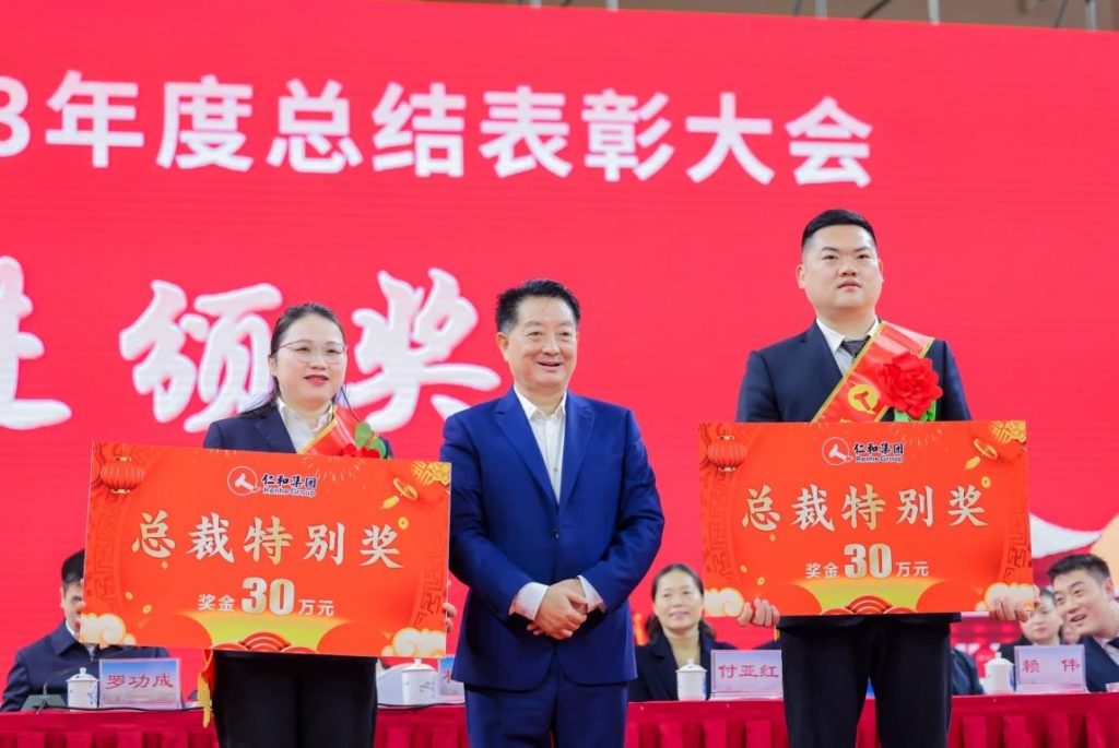 2024年2月19日上午,仁和在樟樹市體育館隆重召開2023年度總結表彰大會,樟樹市市委領導、董事會成員、各戰線營銷將士等員工代表3700余人出席會議,大會隆重宣布了《關于表彰2023年度先進集體、個人的決定》,中進藥業被評選為“先進集體”,公司總經理李圳被授予“總裁特別獎”榮譽。此殊榮展現了中進藥業緊跟公司發展步伐、創新創造,承擔更大責任與使命的精神風貌。總經理李圳獲獎后進行了發言并表示,中進藥業絕不會沉醉在鮮花和掌聲中,而是以實際行動再造仁和中進鐵軍新輝煌,努力發揮先進集體的帶頭作用!
