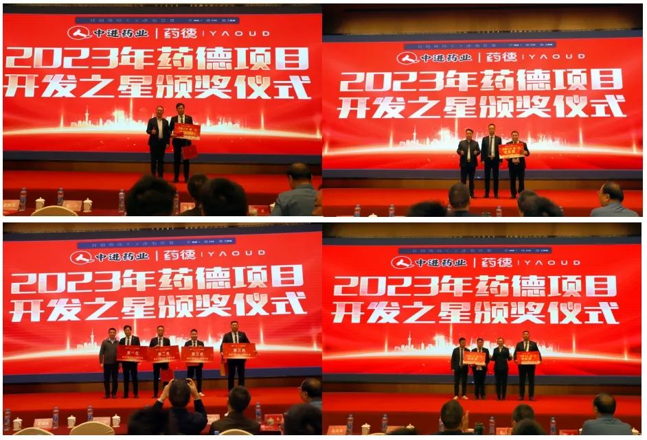 中進(jìn)市場部部長劉永權(quán)宣布《2023年藥德項(xiàng)目開發(fā)之星TOP前三名》,盛邀蘇州華瓴科技有限公司發(fā)展中心總裁盧恩勝、蘇州華瓴科技有限公司發(fā)展中心常務(wù)副總裁孟維君、中進(jìn)人力資源部部長胡耀萍分別為獲得”藥德項(xiàng)目開發(fā)之星”第一名、第二名、并列第三名獲獎省區(qū)頒獎,現(xiàn)場藥德服務(wù)商也為獲獎省區(qū)送上特殊禮品,獲獎的優(yōu)秀省區(qū)代表分別作了熱情洋溢的開發(fā)經(jīng)驗(yàn)分享。