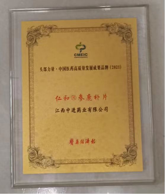 喜訊!中進藥業、參鹿補片分別被評為頭部力量·中國醫藥高質量發展成果企業和成果品牌