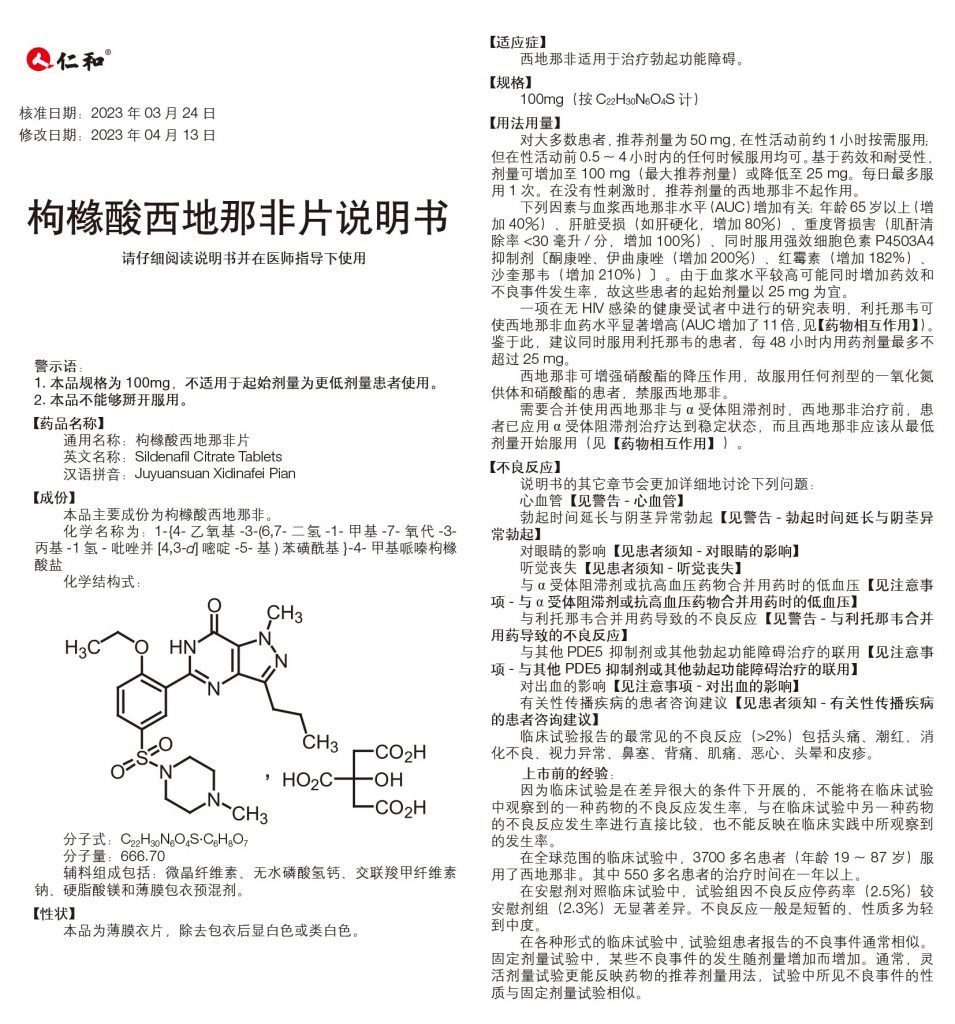 枸櫞酸西地那非片(100mg/片 *2片/板*1板/盒)